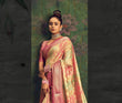 Crafted from high-quality Banarasi organza fabric, this saree boasts stunning Jaal weaves all over the body, adding a unique and elegant touch. The saree also features a woven contrast gold zari border and a beautifully designed contrast Pallu, adding to the overall charm and beauty of the saree.