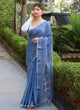 Kashmir Blue Saree in Pure Linen Copper Woven