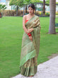 Laurel Green Saree in Banarasi Silk Woven with Floral Prints