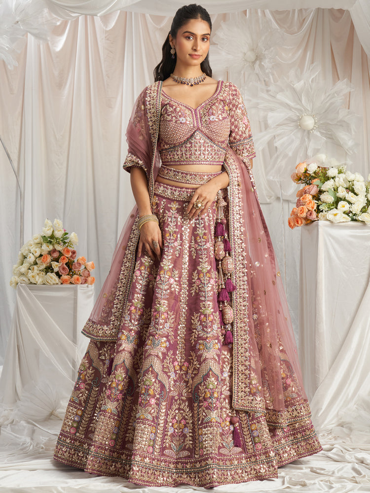 Lavender Bridel net and Gotapatti & Moti embroidery Semi-Stitched Lehenga choli & Dupatta