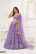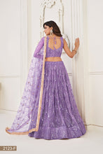 Lavender Butterfly Net Lehenga with Tone-to-Tone Thread Work and Mirror Embroidery