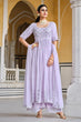 Lavender Georgette Embroidered Work Kurta Palazzo Dupatta Set
