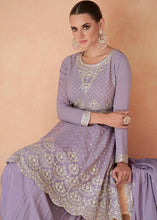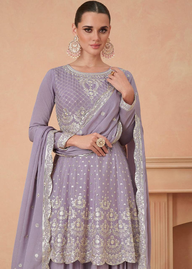 Lavender Graceful Embroidered Chinon Top & Plazo Set with Dupatta