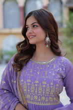 Lavender Luxury Star Georgette Gown with Designer Embroidered Dupatta – 5-Layer Frill Flai