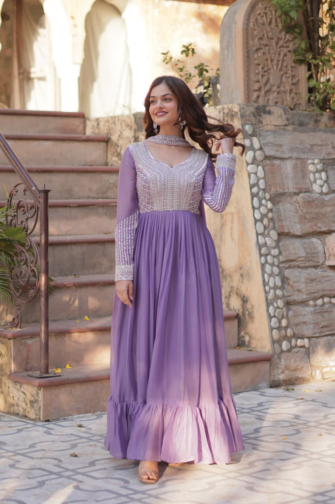Lavender Premium Designer Readymade Gown with Dupatta