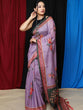 The lavender color of the saree is soft and soothing, making it a perfect choice for any casual or daily wear occasion. The saree comes paired with a printed blouse, adding to the traditional charm of the outfit.