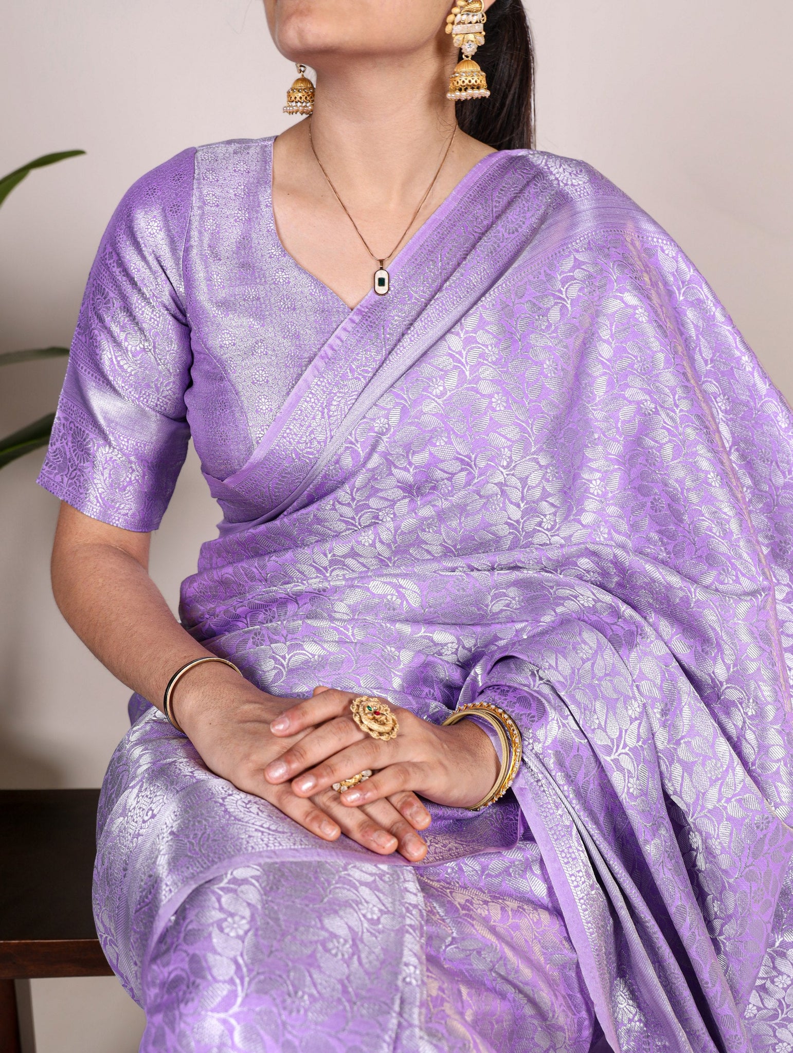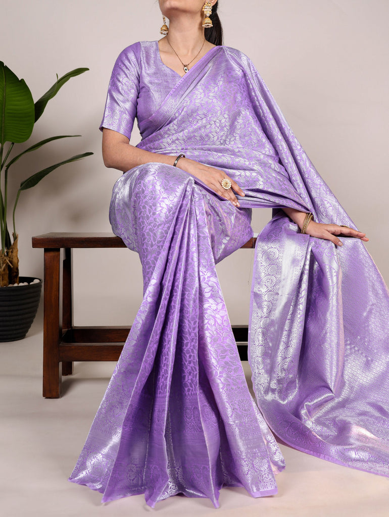 Lavender Timeless Kanjivaram Saree with Exquisite Zari Weaving
