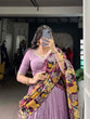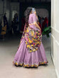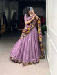Lavender Vichitra Silk Embroidered Lehenga Set with Kalamkari Print Dupatta
