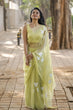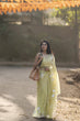 Each flower is meticulously crafted by hand, accentuated with sparkling sequin embellishments that catch the light just right — adding a subtle hint of shimmer. The pastel lemon hue complements all skin tones, making it a versatile pick for brunches, festive gatherings, or a modern haldi ceremony look.