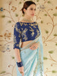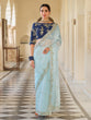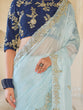Light Blue Organza Embroidered Saree With Unstitched Blouse