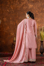 Light Pink Premium Designer Chinon Silk Party Wear Top, Plazzo & Dupatta Set