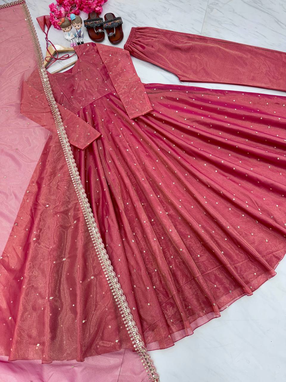 Light Pink Premium Designer Party Wear Pur Twil Gold Net Anarkali Gown, Dupatta Set – Elegant Festive Look