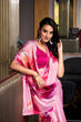 Light Pink Satin Silk Printed Saree with Moonga Silk Hotfix Blouse