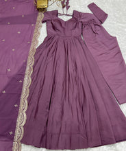 Light Purple Premium Quality Pure Romansilk Chanderi Anarkali Gown with Dupatta & Pant Set - Ready to Wear