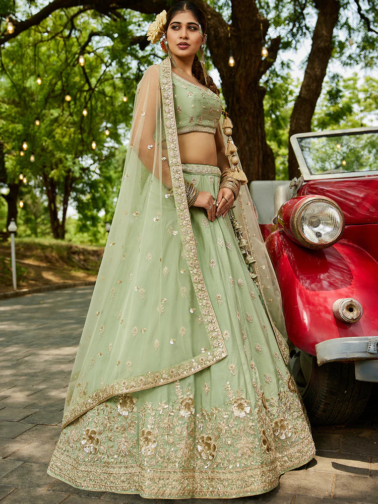 Lime Green Chiffon Semi-Stitched Lehenga Choli Set with Heavy Sequin & Embroidery