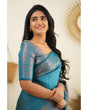 Luxuriant Firozi Soft Silk Saree With Elaborate Blouse Piece