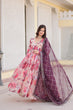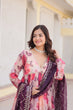 Luxurious Digital Print Alia Cut Pink Gown with Embroidered Dupatta Set