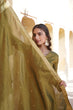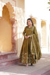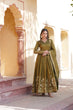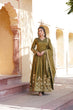Luxurious Olive Green Viscose Cosmos Gown with Embroidered Dupatta Set