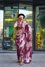 Maroon Elegant Bollywood Satin Printed Saree – Party & Festive Wear