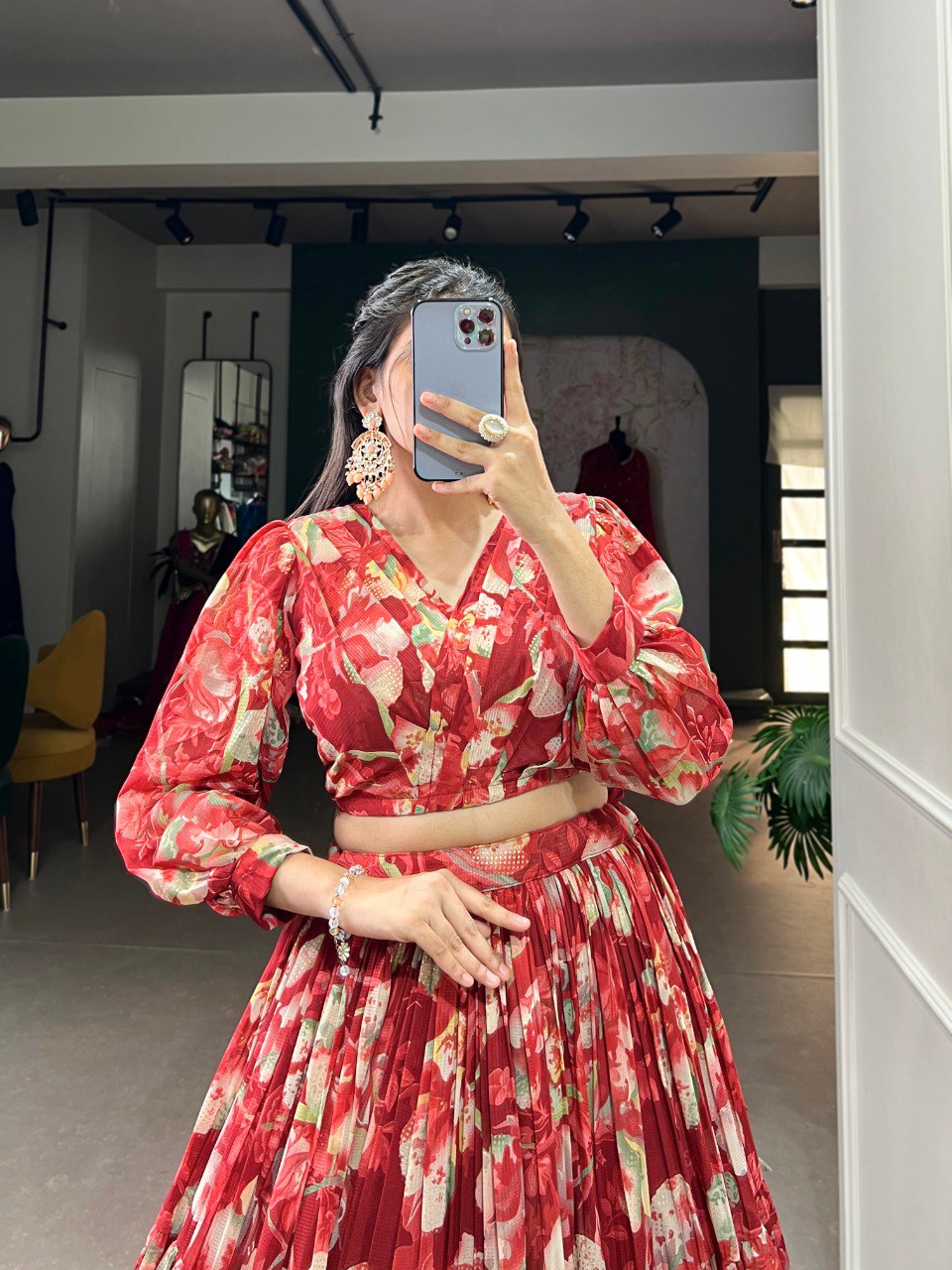 Georgette Chex Floral Print Co-ord Set from the VARSHA Collection. Designed to make you feel confident and beautiful, this stunning set blends modern charm with timeless grace.