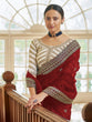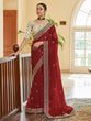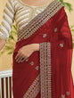 Maroon Organza Embroidered Saree With Unstitched Blouse
