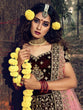 Maroon Pure Velvet Semi Stitched Lehenga With Unstitched Blouse
