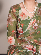 Mehendi Refined Beauty Weightless Marble Printed Saree with Pearl Lace Border