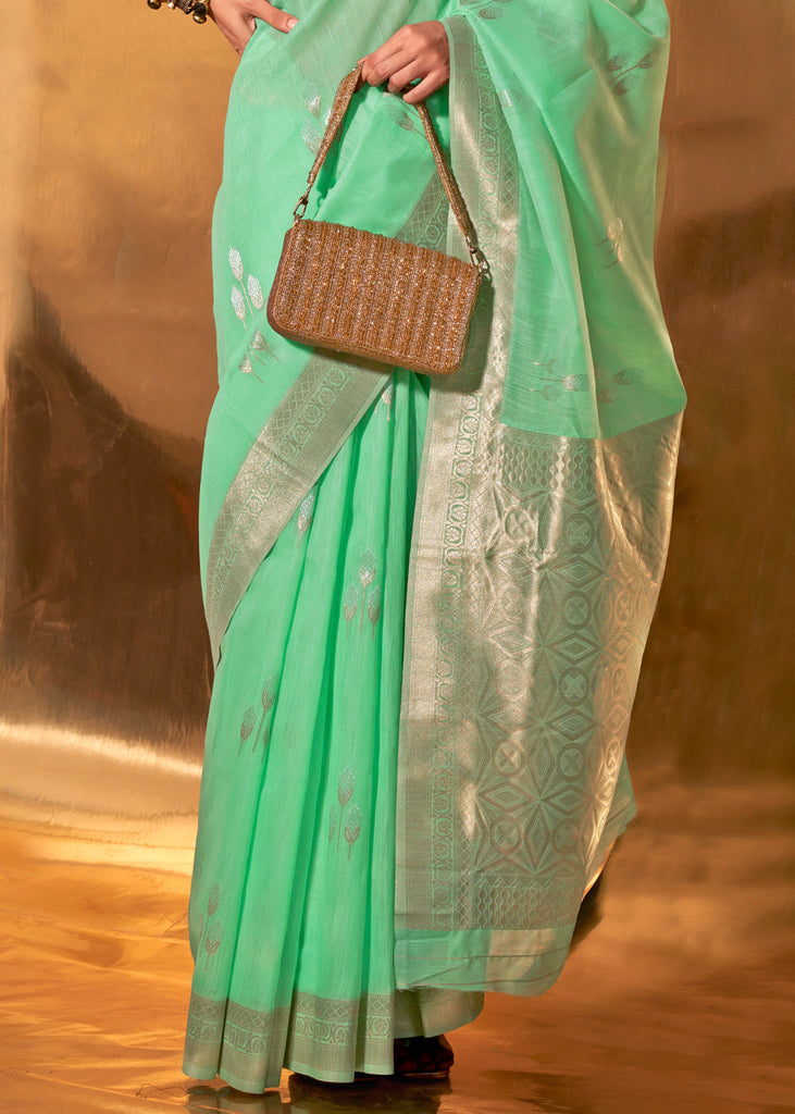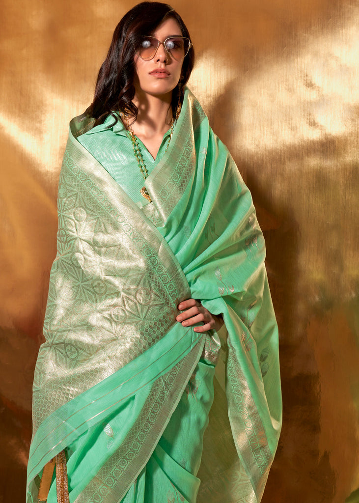 Mint Green Royal Banarasi Silk Saree with Contrast Border & Designer Pallu – Wedding Special