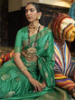 Mint Green Traditional Baluchari Silk Blend Saree with Unstitched Blouse Piece