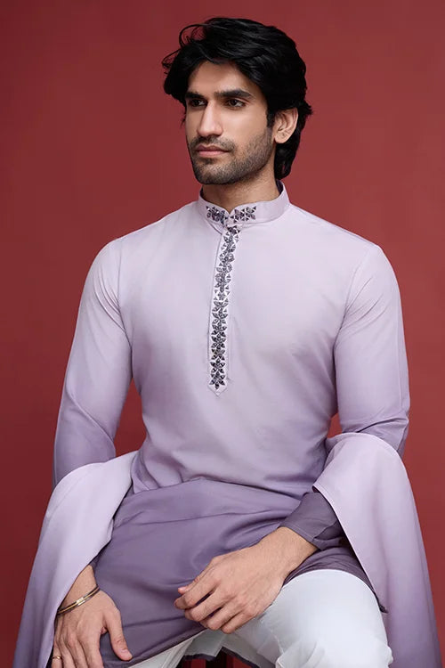 Crafted From Premium Rayon Fabric, This Kurta Ensures Superior Comfort and Breathability, Ideal for Long Hours of Wear During Celebrations. The Intricate Mirror Work is Carefully Hand-stitched to Add Authenticity and Uniqueness to the Design. The Dusty Purple Color is Versatile, Complementing Various Skin Tones and Enhancing Your Festive Aura.