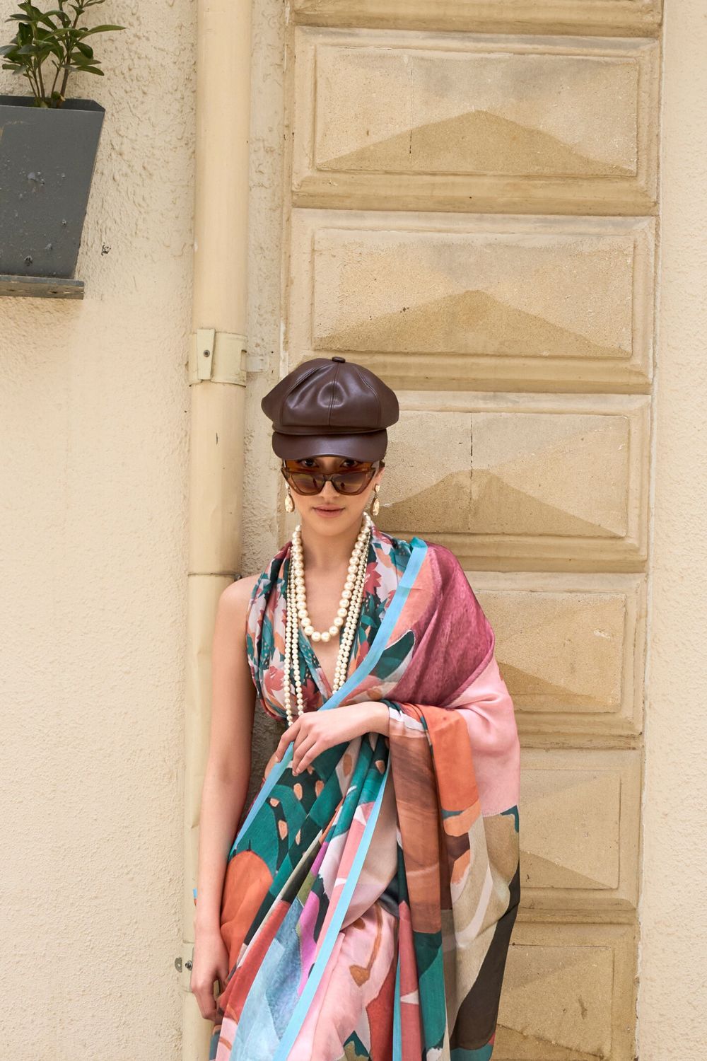 Multi Colour Elegant Bollywood Satin Printed Saree – Party & Festive Wear