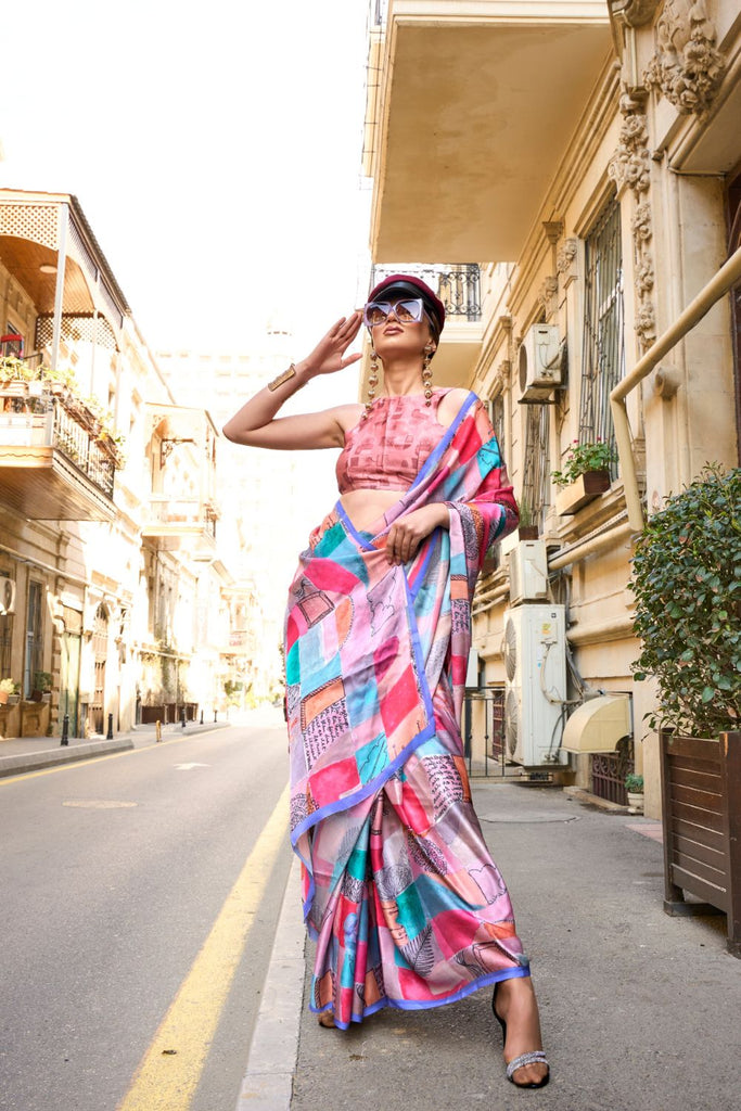 Multi Colour Elegant Bollywood Satin Printed Saree – Party & Festive Wear