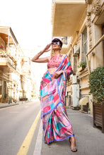 Bollywood-style printed satin saree. Crafted from premium-quality satin, this saree offers a luxurious drape and an elegant sheen, ensuring you stand out in every gathering.