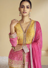 Multi Colour Stylish Embroidered Chinon Top & Plazo Set with Dupatta
