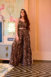 This 3-piece suit set features a stylish brown top, matching brown palazzo pants, and a contrasting grey shrug. Made from soft and breathable muslin fabric, this suit is perfect for a variety of occasions. The digital print adds a touch of personality, while the full round flair of the palazzo pants flatters all body types.