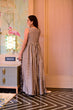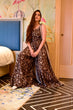 Muslin 3-Piece Designer Suit Set - Brown Top, Brown Palazzo Pants & Grey Shrug