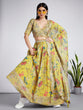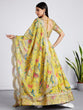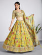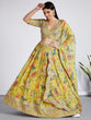 • Lehenga:- Mustarrd Colour Organza Floral Design Digital Printed Full Flaire Semi-Stitched Lehenga with Sequinse, Zari work on the hemline. • Lehenga Stitching Note:- Double Shantoon (Inner details are pending to edit) inner with 2 Layer Can Can 17 and 10 inches with 2 Layer Buckram 12 and 4 inches is given together in lehenga. • Dupatta:- Mustarrd colour organza Dupatta with Sequinse cut work Border Work with Latkanon the corner. • Blouse:-Mustarrd Organza Unstitched(Material) With Digital print and Heavy Sequinse Embroidery Work. • Lehenga Flair:- 4 meter with Inner attached.