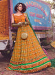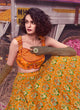Mustard Floral Print Lehenga Choli for Womens For Indian Festival & Weddings - Print Work, Thread Embroidery Work
