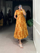 Mustard Sun-Kissed Elegance Floral Georgette Frock