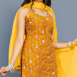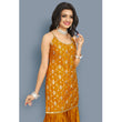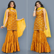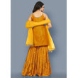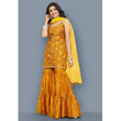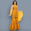 Mustard-Yellow Partywear Zari Embroidery With Mirror Silk Sharara Suit