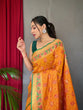 Introducing our stunning Mustard Yellow Saree in Kutch Patola Silk, perfect for any occasion! This saree features intricate meenakari peacock and elephant weaves all over the body, adding a touch of elegance and sophistication. The gold zari woven border adds a touch of glamour, while the Zari Woven Pallu adds a touch of grace. The saree length is 5.5m and comes with a blouse length of 0.8m, making it perfect for any body type. Whether you're attending a party, wedding, or just a casual event, this saree is sure to make you stand out in the crowd. Don't miss out on this beautiful piece!