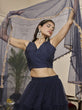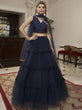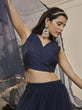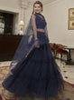 Buy beautiful navy blue net embroidered lehenga choli for celebrating upcoming festival celebration. Shop this redefined lehenga choli which comes with Net blouse and Net dupatta.