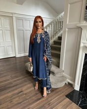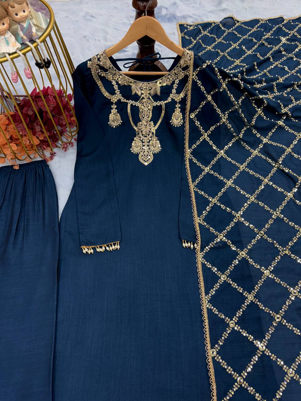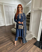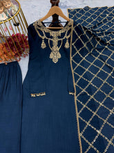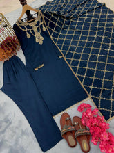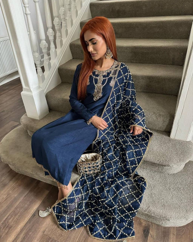 Navy Blue Premium Designer Readymade Top, Bottom & Dupatta Set – Elegant Party Wear Collection