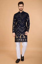 Elegant Navy Designer Rayon Kurta for Men – Perfect for Every Occasion