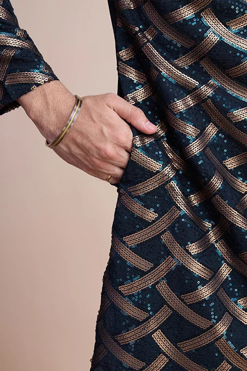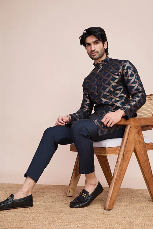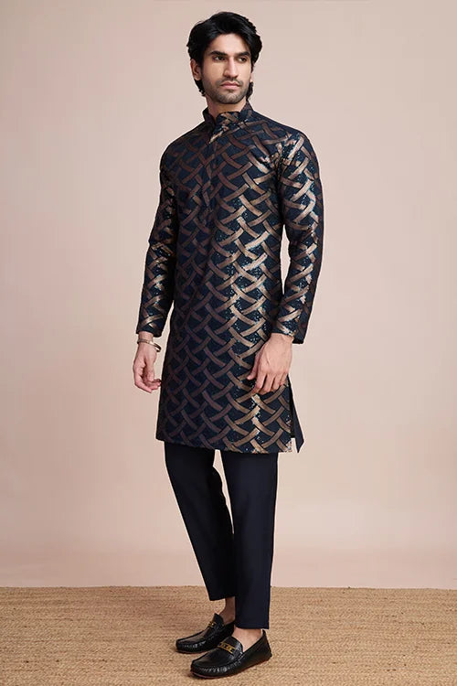 Whether Attending a Wedding Reception or Celebrating a Festive Gathering, This Kurta Exudes Sophistication and Tradition. The Rich Navy Color Makes It a Versatile Piece That Complements Various Accessories and Styles. You’ll Stand Out Effortlessly.This Special Occasion Men's Kurta Navy of India's rich heritage, blending tradition and style seamlessly..