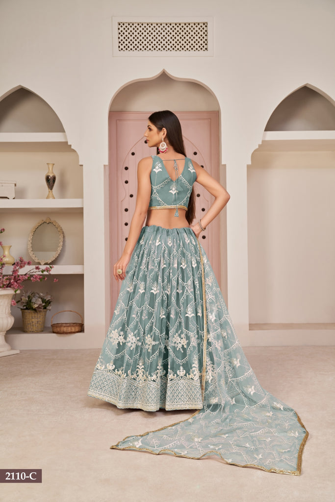 Ocean Blue Butterfly Net Lehenga with Elegant White Thread & Zari Embroidery
