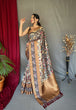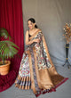 Off White Brown Saree in Banarasi Silk Contrast Woven with Kalamkari Prints
