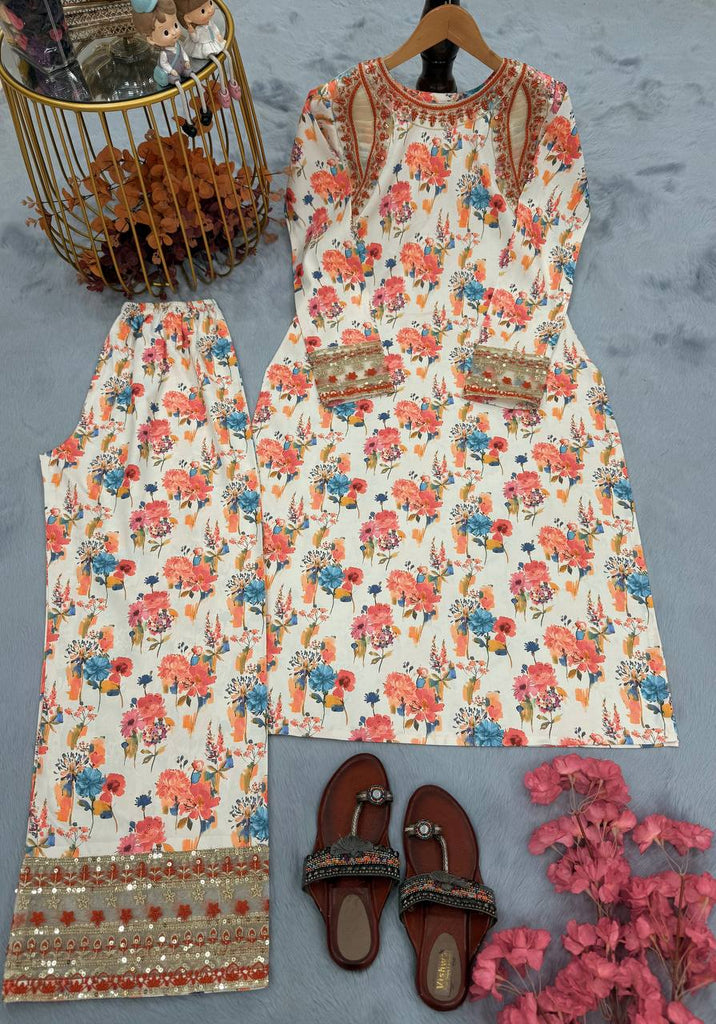 Off White Elegant Embroidered Co-ords Set with 5mm Sequin Work Roman Silk Plazzo Fully Stitched
