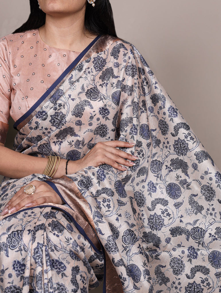 Tasar Silk Printed Saree with Viscose Border beautifully blends rich Indian craftsmanship with modern sophistication, making it a perfect choice for weddings, parties, festivals, and cultural occasions.
