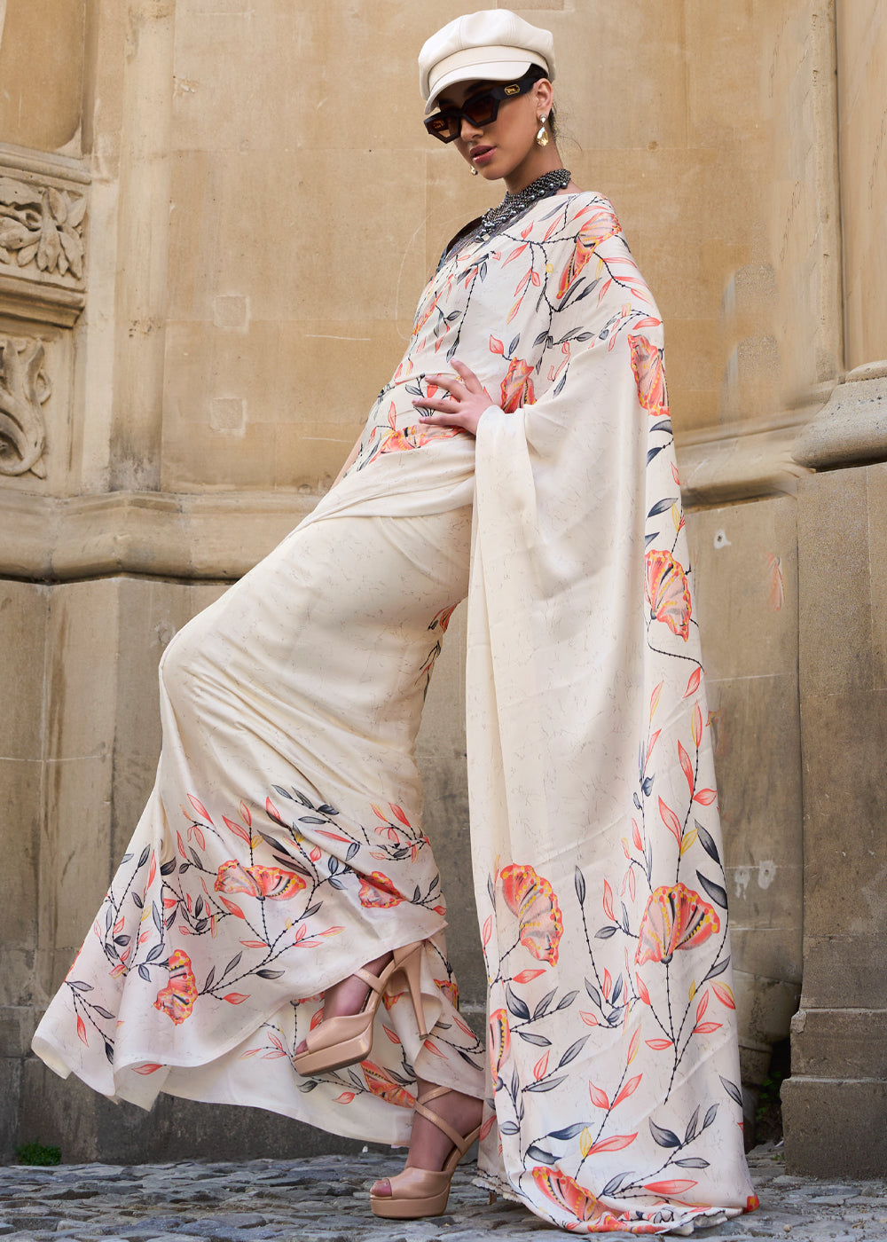 Off White Luxurious Satin Crepe Saree – Elegance with a Graceful Drape